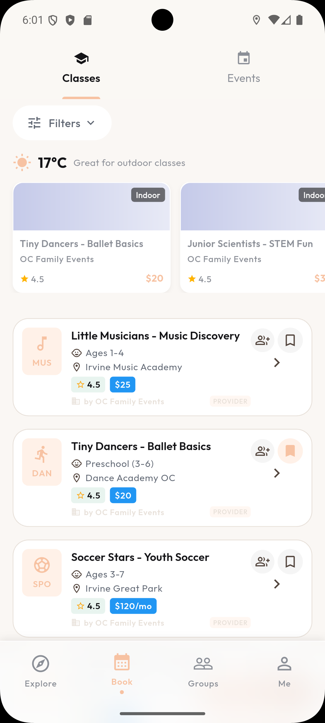Search map + filters to find perfect activities nearby.